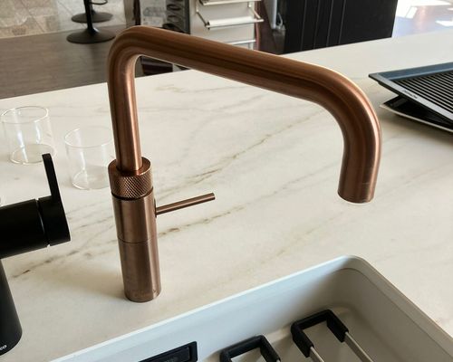 • Besonders komfortable, bedienungsfreundliche Armatur QUOOKER PRO3 FUSION SQUARE in elegantem Kupfer Rosé